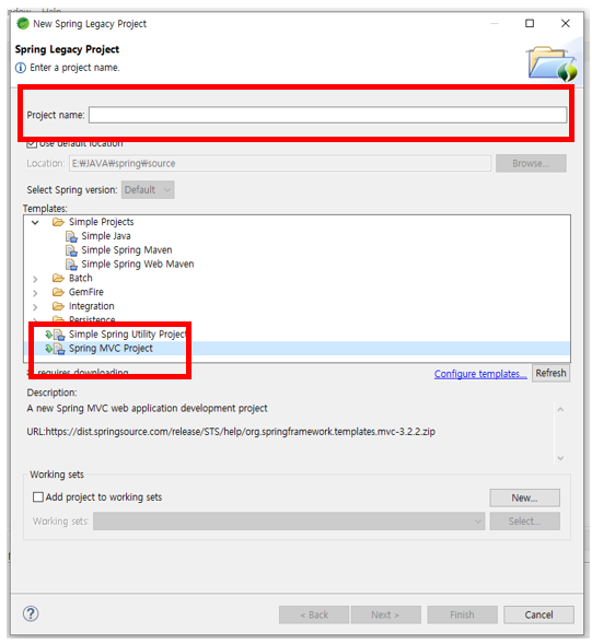 - Spring MVC project 선택 후 Project 명 입력