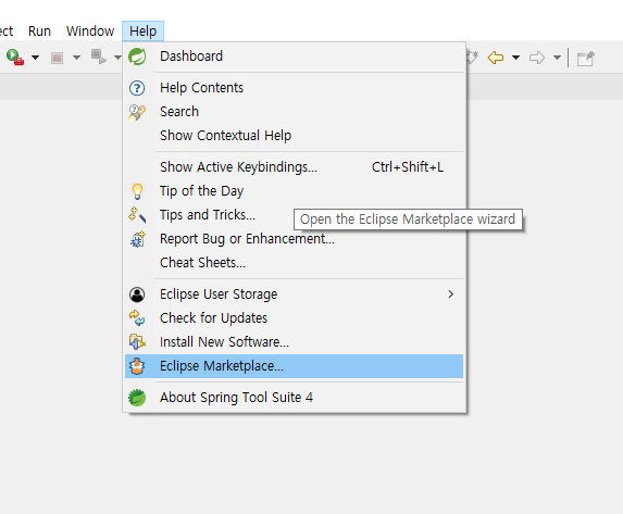 - 상단 Help → Eclipse Marketplace