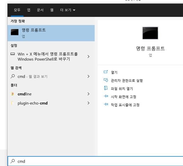 - 시작 → CMD (콘솔창) 검색 후 실행 → "javac -version" 입력 후 버전 출력이 되면 정상적인 설치