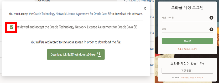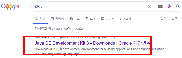 - 구글에 "jdk 8" 검색 후 해당 사이트로 접속