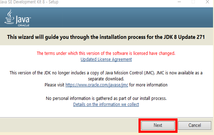 - 다운로드 받은 JDK 파일 실행 후 설치 진행