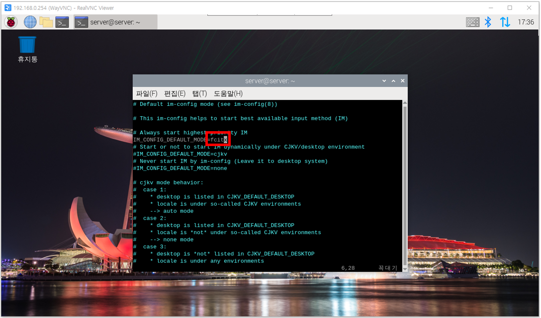 - sudo vim /etc/default/im-config 명령어 실행 후 IM_CONFIG_DEFAULT_MODE=auto를 찾고 auto를 fcitx로 변경합니다.