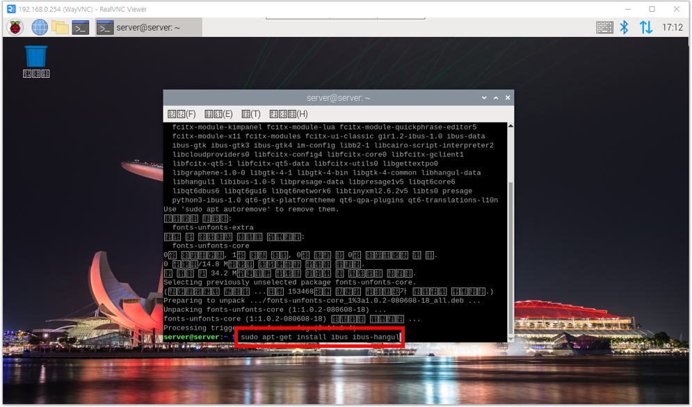 - 다음으로 해당 명령을 입력합니다. sudo apt-get install ibus ibus-hangul