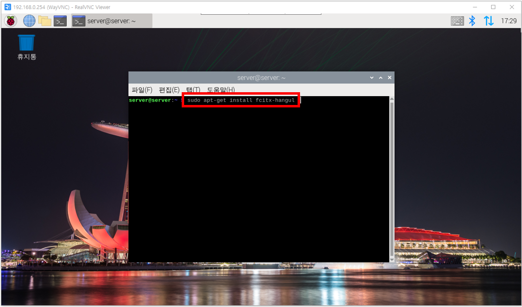 - 해당 명령을 입력합니다. sudo apt-get install fcitx-hangul
