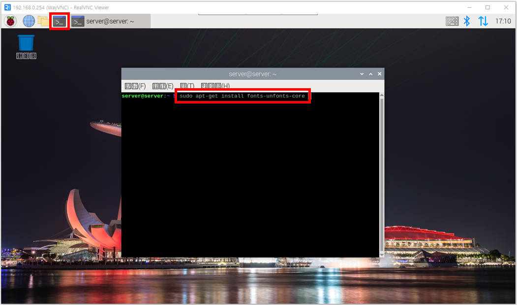 - 터미널 창에서 해당 명령어를 입력합니다. sudo apt-get install fonts-unfonts-core
